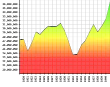 | Key events | Wall Street Crash of 1929 Smoot-Hawley Tariff Act Widespread bank failures Hitler's rise to power Dust Bowl New Deal Recession of 1937–1938 Depopulation of the Great Plains | ||
