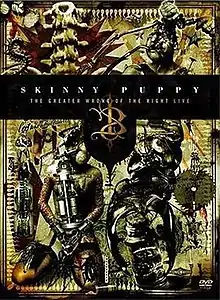 The Greater Wrong of the Right LIVE is a 2-DVD set from Skinny Puppy. Disc one is live footage from their 2004 fall tour shot in Toronto, Ontario and Montreal, Quebec. Disc two includes archival footage from the band's three previous tours.