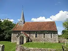 The undedicated small rectangular Church of England parish church is similar to Wiggonholt parish church, with which it often shared a priest in the Middle Ages. The rectangular single-room church has rubble ironstone walls which have mostly lancet windows and are probably 12th century. There is a slate-hung bell turret at the western end. Inside are an unusual double decker pulpit and a 17th-century altar rail.[7]