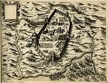 In Upper Albania, large scale rebellions had erupted in Dukagjin in 1565-1566, as well as in 1568 when the Ottomans had tried to tax the non-Muslims.[13] By October 1570, 37 Albanian villages of the Ulqin area, as well as elders of villages near Shkodër had requested the Venetian governor for aid in anti-Ottoman operations since most Ottoman forces had left to quell the revolt in Himara.[14] Led by Bartolomeo Dukagjin (possibly of the noble Albanian Dukagjini family) and supported by the Venetians, the Albanian rebels captured the town of Lezhe in December 1570.[15] Almost simultaneously, another revolt erupted in the region of Mat.[16] Alarmed by the spread of the rebellions, between December 1570 and March 1571, the Sultan ordered local Ottoman authorities to gather a force of janissaries and cavalry to attack Lezhe.[16] Ottoman forces under Ahmed Pasha advanced from Skopje to Albania, then northwest towards Ulqin, overcoming a combined Venetian-Albanian force on the river Buna before reaching Ulqin itself.[17] The defenders finally surrendered the city after the Ottoman fleet of Ali Muezzinzade Pasha and Pertev Pasha appeared in front of the city.[18]