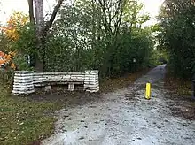 Most of the rail trail is paved except for the portion between the Highland Park Metra station and Glencoe, which is primarily crushed stone. Running parallel to the Metra North Line, riders can access the train directly from the trail at the following Metra stops: Highland Park, Ravinia, Braeside, Glencoe, Hubbard Woods, Winnetka, Indian Hill, Kenilworth, and Wilmette.[2][12] The trail is wheel-chair accessible. There is also an elevator at the Winnetka station that allows access to the trail. For the most part the trail follows a designated path except in Kenilworth where it runs along Abbotsford road. In Glencoe, the trail also runs along Old Green Bay Road for less than one mile. The work of local landscape architect Jens Jensen can also be seen at various points throughout the trail. In August 2014 a crossover trail was installed running westward along Lake-Cook road to connect to the North Branch Trail.[13]