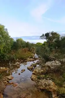 Greenough /ˈɡrɛnəf/ is a historical settlement situated in a floodplain (the Greenough Flats) 400 kilometres north of Perth, Western Australia and 24 kilometres south of Geraldton on the Brand Highway. The settlement's historical buildings are mostly built of local limestone and date to the second half of the 19th century. A sizeable collection of these are owned and managed by the National Trust of Australia. A remarkable feature of the Greenough Flats is its windswept trees, some of which are bent 90 degrees due to the prevailing coastal winds.