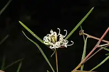 Grevillea wiradjuri is species of flowering plant in the family Proteaceae and is endemic to inland New South Wales. It is an open, erect or dwarf shrub with linear leaves, and clusters of 8 to 20 white flowers.