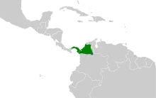 The grey-cheeked nunlet has a somewhat restricted range that extends from central Panama to north-central Colombia. N. f. stulta is the northernmost subspecies; it is found from central Panama into extreme northwestern Colombia. N. f. pallescens is found in the Caribbean lowlands of northern Colombia. The nominate subspecies is found in the interior of northern Colombia. The species inhabits a variety of landscapes including moist to humid primary and secondary forest, gallery forest, and thickets; it especially favors woodlands along rivers. it usually inhabits the lower levels of the forest but can be found up to the subcanopy. In elevation it ranges from sea level to 1,000 m (3,300 ft).[6]