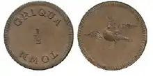 The Griqua coinage was the first community coinage in South Africa[1] and was introduced by the London Missionary Society.