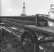 Natural gas was initially mainly a by-product of petroleum, which was more economically attractive. In 1948, the Nederlandse Aardolie Maatschappij (NAM), jointly owned by Shell and Esso, discovered a natural gas field in the Netherlands for the first time near Coevorden. This gave rise to the expectation that more natural gas fields could be found in the Netherlands. In the north and east of the country they searched for gas fields, including near the later Groningen gas field. In 1954 and 1955, drilling at Haren and Vlagtwedde yielded nothing.[5] On 24 October 1955, when seeking oil at Thesinge, natural gas was found in the Zechstein formation, but they drilled 40 to 50 meters too little to discover the Groningen gas field.[6]
