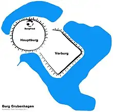 Grubenhagen Castle (German: Burg Grubenhagen) is the ruin of a lowland castle in Schloß Grubenhagen, a village in the civil parish of Vollrathsruhe in the county of Mecklenburgische Seenplatte in Mecklenburg-Western Pomerania in Germany.