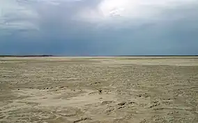 The central focal point of the Grulla National Wildlife Refuge is an ephemeral salt lake or saline playa – a shallow basin that collects runoff from the surrounding drainage area during heavy downpours but then often dries completely due to evaporation. This playa lake has been known by various names. Current USGS topographic maps and most commercially available maps of this region refer to this saline playa simply as "Salt Lake".[2][3] Back in the early 1880s, this playa was part of the DZ Ranch, and those familiar with the ranch often favor the name "DZ Lake". The lake is also frequently called "Arch Lake" after the nearby community of Arch, New Mexico, located around 6 km to the northwest.[4][5]