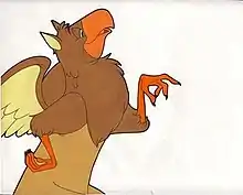 - Gryphon appeared in the Sunsoft's 2006 mobile game Alice's Warped Wonderland (歪みの国のアリス, Yugami no kuni no Arisu, Alice in Distortion World). Depending on the player's choice, Gryphon is found in the forest by the Queen of Hearts' castle and helps Ariko (the "Alice" of the game) by giving her a ride on his back. In the game, the snake tail is Gryphon's "head" while the avian head is his rear. While the eagle head is animalistic, the snake tail is capable of speech and talks to Ariko in a fatherly manner.[1][2]