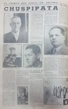 Once the facts were discovered, Villarroel maintained that he had not ordered the executions. However, as head of government, he took responsibility for what happened. Some versions indicate that several crimes carried out during the Villarroel government were carried out by RADEPA, without the knowledge of the president.[26] Whatever the case, the executions shocked the population. In 1977, writer Roberto Querejazu would claim that "if the Catavi massacre was the flag raised by the MNR and the RADEPA in their revolt against Peñaranda, the 'crimes of Challacollo and Chuspipata' became those of the PIR and the traditional parties to drag public opinion against Villarroel."[25]