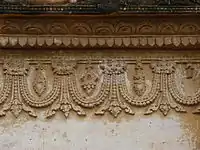 In the interior above these windows are terraces with small Buddha figures, backed by intricate, ornamental stucco carvings with floral designs. Other stucco designs that can be seen in Gubyaukgyi include concentric rings and ogre figurines. There are also, in the walls, 34 recesses, each of which used to contain a statue of Buddha. Due to vandalism, however, only 19 of these statues remain.[5]