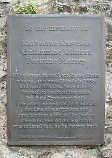 - ↑ The Acts And Monuments Of The Christian Church By John Foxe: 350. Katharine Cawches, Guillemine Gilbert, Perotine Massey, and an Infant, the Son of Perotine Massey
