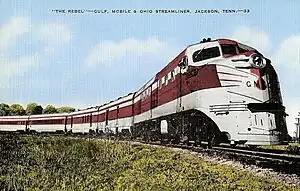 In 1935 the Gulf, Mobile and Northern Railroad (GM&N), a predecessor of the GM&O, introduced the Rebel between New Orleans, Louisiana and Jackson, Tennessee. It was the first lightweight streamliner in the Southern United States. In the fashion of mid-1930s streamliners each consist was built as a cohesive set with streamlined power car, although the cars were not articulated. Even before its merger with the Mobile and Ohio Railroad in September 1940 the GM&N had begun assembling equipment for a new Rebel.[1]
