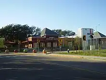 The Baker-Ripley Neighborhood Center, in the Southwest Management District, was scheduled to open in December 2009.[76][148] The center consists of a 4 acres (1.6 ha) campus with five buildings.[58] Designed by New Orleans-based Concordia architects and landscaped by Asakura Robinson Company,[148] the site contains a farmers market, health clinic, outdoor film venue, publicly accessible library, school, and some outdoor recreation areas. The center design incorporates architectural influences from Mexican and South American art.[149] Rosa Gomez, an employee of Neighborhood Centers, said that the organization did not want Baker-Ripley to appear "too fancy or official looking" so as not to intimidate recent immigrants. The non-profit organization Project for Public Spaces assisted in the development of Baker-Ripley.[148] The organizers consulted residents of Gulfton and Sharpstown on the design of the center. Susan Baker, the wife of James Baker, a former U.S. Secretary of State, organized a fundraising campaign for the center.[58] The center offers English and computer classes. Neighborhood Centers received a United States Department of Education Promise Neighborhood planning grant, used to fund its Gulfton Promise Project, a program to guide residents from birth until they obtain careers.[145] A 2013 Houston Chronicle article stated that the center had never experienced a break in incident and that the Gulfton community "embraced" it.[150]