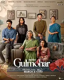Gulmohar (transl. Flame Tree) is a 2023 Indian Hindi-language drama film written and directed by Rahul V. Chittella.[1] The film stars Sharmila Tagore, Manoj Bajpayee, Simran, Suraj Sharma, Amol Palekar, and Kaveri Seth, amongst others.[2][3] It was released on Disney+ Hotstar OTT platform on 3 March 2023.[4] It was featured at the 54th IFFI Indian panorama mainstream section.[5]