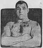 Moir's success led to commercial ventures such as the Gunner Moir boxing glove, and he appeared in a newspaper advertising campaign for Phosferine tonic, which continued for several years.[4][5] He also trained the wrestler George Hackenschmidt.[6] He successfully defended the title against Tiger Jack Smith, leading to a fight for Tommy Burns' world title on 2 December 1907 at the National Sporting Club — the first world heavyweight title fight to be held outside the US;[7][8][9] Burns retained his title in 10 rounds after knocking down the taller and heavier Moir twice in the first two rounds.[10][11] Burns subsequently claimed to have prolonged the fight in order to increase the value of the film rights to the fight, which he held.[12]