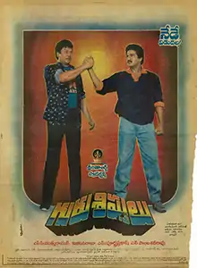The film begins at Central Jail where two petty thieves Raja and Babu are guilty. Therein, they are acquainted with an innocent guy, Manohar, who is destined for the death sentence. He wants to meet Raja and Babu as his last wish and narrates his story. Once, his sister Sumathi was kidnapped by a Taxi driver and molested and killed by a malicious Muddu Krishna, the younger brother of a millionaire Raja Shekaram. Manohar filed up the case when Inspector Paramasivam abettor of blackguards manipulated. Thereupon, Jairam partner of Raja Shekaram intrigued and indicted him in the crime of killing the taxi driver. Right now, Raja and Babu decide to rescue Manohar and holds over the judgment by breaking his hand. Soon after, they start up their trials, initially, they confine Paramasivam with his help Raja joins as a bodyguard for Muddu Krishna. Parallelly, Babu traps Chitra daughter of Raja Shekaram into his love. In the meantime, Raja falls for Geeta daughter of Paramasivam. Just after, they detect that Manohar's parents are under the custody of Raja Shekaram and Jairam as Manohar's father Narayana Rao is aware of a hidden treasure. So, they protect them when Raja recognizes them as his parents too. Here as a flabbergast, Babu identifies Narayana Rao as a homicide of his parents when a clash arises between Raja and Babu which calms down after learning the truth. Indeed, the real culprit is Raja Shekaram who killed Babu's parents in the veil of Narayana Rao. At last, Raja and Babu ceases the baddies, safeguards the treasure, and prove Manohar guiltless. Finally, the movie ends on a happy note with the marriages of Raja and Geetha and Babu and Chitra.