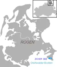 From July to August 1806, officers Boye and Gripenberg completed surveying the area around Groß and Klein Zicker, attesting that the nearby bay Zicker See would make a good harbor for three to four hundred vessels once the sand splits barring the inlet were dredged.[3] Boye also drafted first plans for the town.[4]