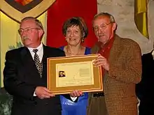 ![]() Guy Thomas, on the right, during his presentation of the Marcel Grancher Literary Prize. | |
