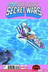 Gwenpool (Gwendolyn "Gwen" Poole; colloquial: "GwenPool"; "Pink Slayer") is a fictional character appearing in American comic books published by Marvel Comics. A girl from the real world transported to the Marvel Universe, her physical design originated as an amalgam of Gwen Stacy and Wade Wilson created by Chris Bachalo for a variant cover of Deadpool's Secret Secret Wars #2, which was one of twenty such variant covers published due to the popularity of Spider-Gwen from June 2015.