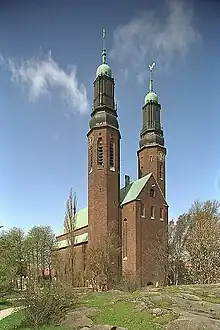 Högalid Church (Swedish: Högalidskyrkan) is a protected church located in the Södermalm district of Stockholm, Sweden.[1] It was designed by architect Ivar Tengbom. Built upon elevated ground 1916–1923, in a barren area later turned into a park,[2] it is one of the most prominent buildings in the city, complementing the contemporary Stockholm City Hall on the opposite side of Riddarfjärden. The church is considered one of Sweden's foremost examples of the National Romantic architectural style.[3]