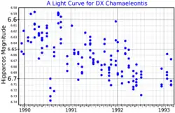 A light curve for DX Chamaeleontis, plotted from Hipparcos data[1]