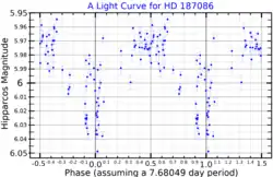 A light curve for HD 187086, plotted from Hipparcos data[1]