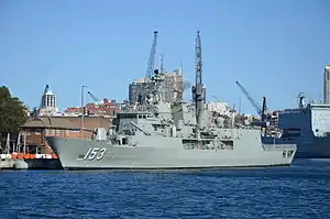 On the morning of 13 March 2009, Stuart was one of seventeen warships involved in a ceremonial fleet entry and fleet review in Sydney Harbour, the largest collection of RAN ships since the Australian Bicentenary in 1988.[23] The frigate was one of the thirteen ships involved in the ceremonial entry through Sydney Heads, and anchored in the harbour for the review.