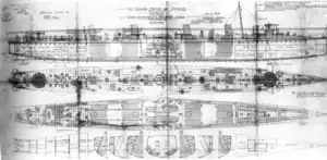 Express was laid down on at Laird's Birkenhead shipyard on 1 December 1896 as Yard number 629, and was launched on 11 December 1897.[3] Express was subject to an extensive series of trials over an 18-month period in an attempt to reach the contracted speed of 33 knots. Although Lairds managed to drive the ship's machinery to up to 10,012 indicated horsepower (7,466 kW), well in excess of the rated 9,250 indicated horsepower (6,900 kW), and experimented with different propellers, Express failed to reach the required speeds. It was eventually decided by the Admiralty to accept Express despite this failure in recognition of Laird's great efforts and expense in trying to reach the over-optimistic requirement, and the fact that forcing the ship's machinery further was likely to cause excessive wear.[10] Express was delivered to Devonport for further trials in August 1902,[11] and eventually commissioned later that year.