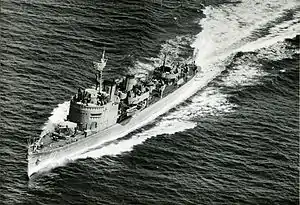 Norrköping was rerated a frigate on 1 January 1961 along with the rest of the class but was not further updated.[13] The destroyer did not serve long in this capacity and was decommissioned on 1 February 1965.[14] Norrköping was subsequently used as a target ship until being sunk on 26 May 1977. The wreck lies near that of sister ship Göteborg.[15]