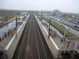 Haarlem Spaarnwoude is a railway station in Haarlem, Netherlands. It is located east of the Haarlem city centre and south of Spaarnwoude, on the Amsterdam–Rotterdam railway. The N200 road (from Amsterdam to Haarlem) runs parallel to the railway on the south side. The station opened on 24 May 1998. On the north side of the station is an IKEA store.