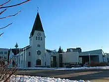 St. Joseph's Church (Sankti Jósefskirkja [ˈsan̥tɪ ˈjouːsɛfsˌcʰɪr̥ca]), one of the few Roman Catholic churches in Iceland whose parish was founded in 1926, can be visited in the South of the town centre.[14] Karmelklaustur [ˈkʰarmɛlˌkʰlœystʏr̥] is the only Catholic monastery in Iceland.[15] Fríkirkjan í Hafnarfirði [ˈfriːˌcʰɪr̥can iː ˈhapnarˌfɪrðɪ] is a Protestant church built in 1913.[16]