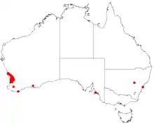 Hakea erinacea grows on sandy loam, clay and lateritic gravel on the coastal plains and the Darling Ranges north of Perth.[5]