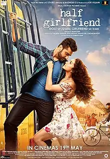 Half Girlfriend is an Indian Hindi-language romantic drama film based on the novel of the same name written by Chetan Bhagat.[4] The film is directed by Mohit Suri and stars Arjun Kapoor and Shraddha Kapoor in lead roles.[5] The film also places Vikrant Massey and Rhea Chakraborty in pivotal roles. It performed moderately well at the box office despite receiving mixed to negative feedback from critics.[6][7]