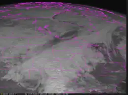 ![]() The blizzard developing over the Central U.S on October 31, 1991. The 1991 Perfect Storm can be seen at the far right. | |