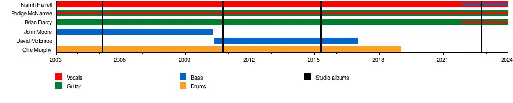 The band originally consisted of Niamh Farrell (vocals), Podge McNamee (vocals and guitar), Brian Darcy (guitar and piano), John Moore (bass guitar) and Ollie Murphy (drums). On 12 April 2010, Moore announced he was leaving the band, and was later replaced by David McEnroe. At some point prior to 2020, both Murphy and McEnroe left the band, with the remaining members continuing as a trio.