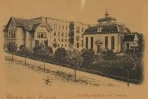 On 17 July 1810, Jacobson opened a prayer house in Seesen, to serve the modern Jewish school he founded earlier. He named it "temple", a rather common designation at the time, borrowed from the French and used also by traditional Jewish houses of prayer.[8] Certain that the lack of decorum drove the young away from synagogue, he abridged the service, introduced both prayers and an edifying sermon in German (very different from the old talmudic discourse in Yiddish), and confirmation for children. Contrary to prevalent custom, no mechitza hid from view the women sitting separately at the upper story. A choir and an organ accompanied the prayer: instrumental music in synagogue was almost unknown among Ashkenazim, and the organ was strongly associated with church services. Another feature was the use of Sephardic Hebrew, deemed more aesthetic than the traditional Ashkenazi pronunciation.[9] Admiration for the acculturated and integrated Sephardim of Western Europe, whose emancipation was rather a formality as they already enjoyed extensive privileges, was a central element in the worldview of their Central European brethren, both of the moderate and radical cast, hoping to emulate them. It inspired the Haskalah to a great measure. The old pronunciation was associated with the Jews of Poland, considered backward and superstitious.[10] Jacobson's temple elicited barely any protest.[7] Baruch Mevorah noted that all the reforms introduced lacked either consistency or an ideological undertone.[11]