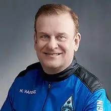 Harding flew to space as part of the suborbital Blue Origin NS-21 mission, on 4 June 2022, on the fifth crewed spaceflight of the New Shepard rocket.[3][10] After travelling to space, he advocated for space tourists (paid recreational spaceflight passengers) to be called astronauts.[11] He also advocated for the United Arab Emirates to expand its space programme.[12]