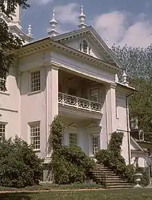 Hampton National Historic Site, in the Hampton area north of Towson, Baltimore County, Maryland, USA, preserves a remnant of a vast 18th-century estate, including a Georgian manor house, gardens, grounds, and the original stone slave quarters. The estate was owned by the Ridgely family for seven generations, from 1745 to 1948. The Hampton Mansion was the largest private home in America when it was completed in 1790 and today is considered to be one of the finest examples of Georgian architecture in the U.S.[2] Its furnishings, together with the estate's slave quarters and other preserved structures, provide insight into the life of late 18th-century and early 19th-century landowning aristocracy. In 1948, Hampton was the first site selected as a National Historical Site for its architectural significance by the U.S. National Park Service.[2][3] The grounds were widely admired in the 19th century for their elaborate parterres or formal gardens, which have been restored to resemble their appearance during the 1820s. Several trees are more than 200 years old.[4] In addition to the mansion and grounds, visitors may tour the overseer's house and slave quarters, one of the few plantations having its original slave quarters surviving to the present day.[2]