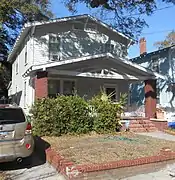 Contributing 4 Elmwood Ave. 1920 Front-gable Twin to 362 Ashley Ave. and 551 Huger St.; subsequent renovation reopened porch but removed original windows