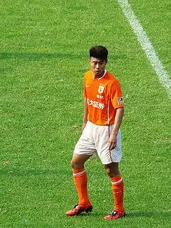 A product of Shandong Luneng's youth academy, Han Peng made his debut for the club on 10 March 2002 against Sichuan Guancheng. This was followed by his first league goal on 23 March 2002 in a game against Chongqing Lifan. Gradually establishing himself within the Shandong team for several seasons, it wasn't until Han was partnered with Li Jinyu during the 2005 season that he started to show his prolific nature as a striker when he scored seven league goals.[1] This was followed by another ten league goals that helped Shandong win the 2006 league title as well as the Chinese FA Cup.[2] While the next season would see Han have his most productive season when he scored thirteen league goals, he was unable to help Shandong retain the league title.[3] The 2008 season was to personally be a disappointing campaign for Han when he found himself injured throughout most of the season; however, he was still able to help Shandong win the league title.