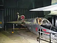 The cockpit accommodated its pilot, who was seated upon a Martin-Baker-built ejector seat, underneath a sliding canopy.[8] Cockpit instrumentation included an airspeed indicator, altimeter, yawmeter, electric turn-and-slip indicator, artificial horizon, directional gyro, and a stand-by compass. No lighting was provided, enabling a relatively small battery for the turn-and-slip indicator to suffice.[8] Manually operated flight controls were present, which incorporated a differential gearbox arrangement. Hydraulically-actuated wheel brakes, operated by foot pedals in the cockpit, were also provided.[8] When required, additional deceleration was available via a drogue parachute stowed at the base of the rudder. Information such as airspeed, altitude, angles of incident, and other criteria were captured primarily by a pair of synchronised flight recorder.[9]