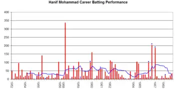 Hanif Mohammad's career performance graph.