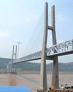 The Hanjiatuo Yangtze River Bridge is a cable-stayed railway bridge over the Yangtze River in the Fuling District of Chongqing, China. The bridge carries the Chongqing-Lichuan Railway and was completed in 2012.[1]