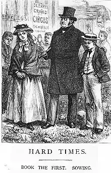 Louisa and Thomas, two of Mr. Gradgrind's children, go after school to see the touring circus run by Mr. Sleary, only to meet their father, who orders them home.[5] Mr. Gradgrind has three younger children: Adam Smith (after the famous theorist of laissez-faire policy), Malthus (after Rev. Thomas Malthus, who wrote An Essay on the Principle of Population, warning of the dangers of future overpopulation), and Jane.[6]
