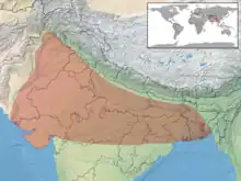 Found in Bangladesh (southeast part of the country), India (Madhya Pradesh, Uttar Pradesh, Rajasthan, Gujarat, Odissa) and Pakistan (Sindh).