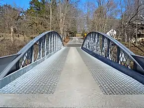In 2009, the Pennsylvania Department of Transportation (PennDOT) was programmed to spend $1.7 million to rehabilitate this bridge and improve its load capacity without interfering with its historical nature.[2] On June 22, 2010, the bridge was closed for rehabilitation work including replacement of the open-grid steel deck with a new deck incorporating a concrete center section for bicycle use. The $826,689 restoration was expected to last until October 2010 and raise the load restriction to 15 tons (14 metric tons).[3] The bridge was reopened on December 10, 2010.