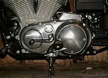 Sportster engines retained the K/KH design crankcase design, in which the transmission is contained in the same casting as the engine, and driven by the engine with a triple-row #35 chain primary drive and a multi-plate cable-operated clutch. Models since 1991 have five speeds; 1990 and earlier models had four speeds.