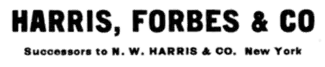 The firm traces its origins to the founding of N.W. Harris & Co. in 1882 by Norman Wait Harris.[3] This firm, which specialized in the underwriting of municipal bonds, was one of the early pioneers in the investment banking, particularly outside of New York. In 1907, Harris formed Harris Trust & Savings Bank and folded in the investment banking business. Harris Forbes incorporated in 1911. Wetmore Halsey, later a founder of Halsey, Stuart & Co., was a partner in Harris, Forbes.