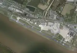 Harrisburg International Airport covers 680 acres (280 ha) at an elevation of 310 feet (94 m) above mean sea level. It has one asphalt runway, 13/31, 10,001 by 200 feet (3,048 by 61 m).[5][13]